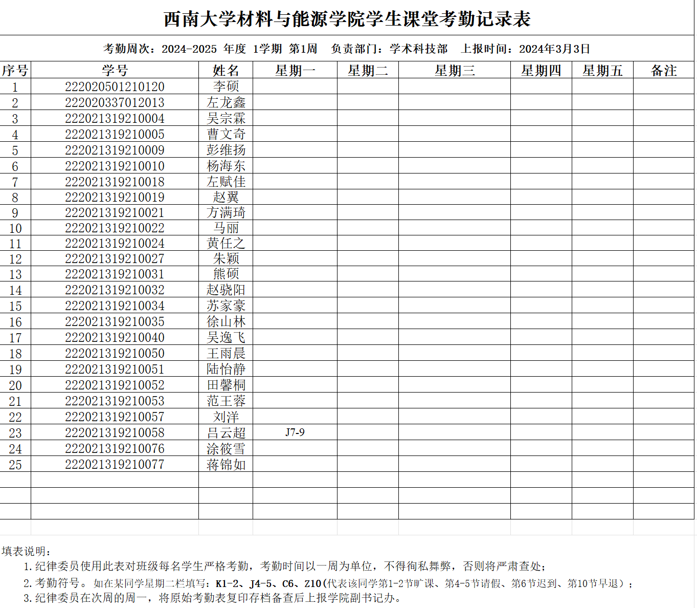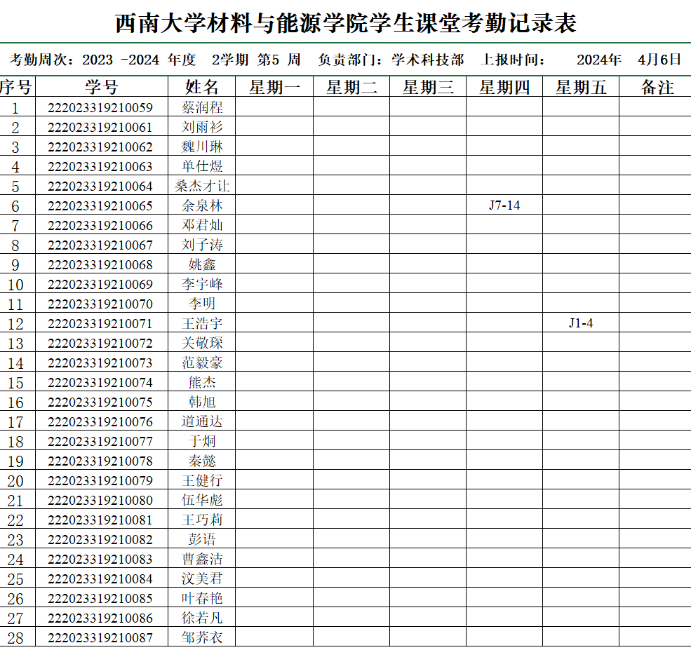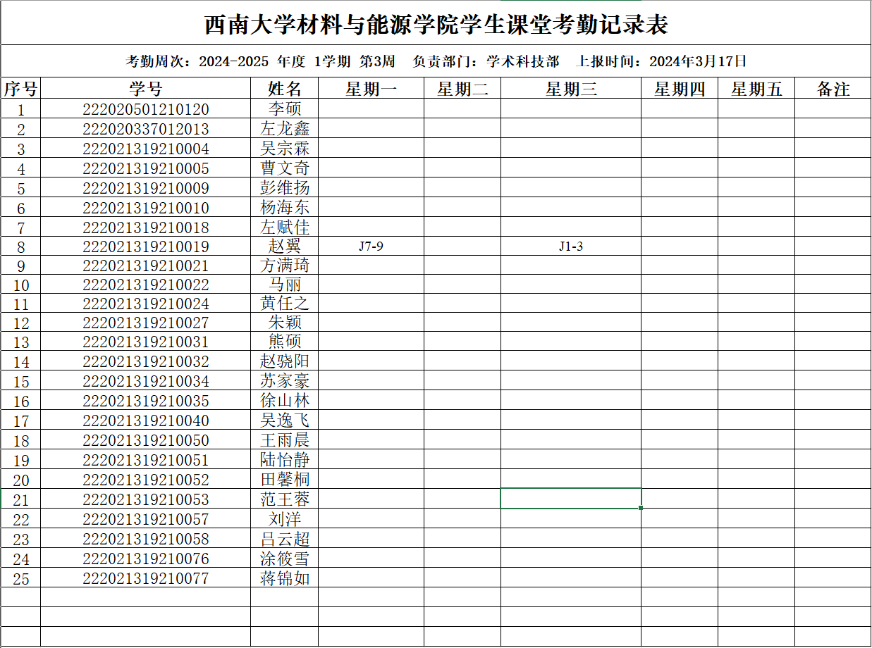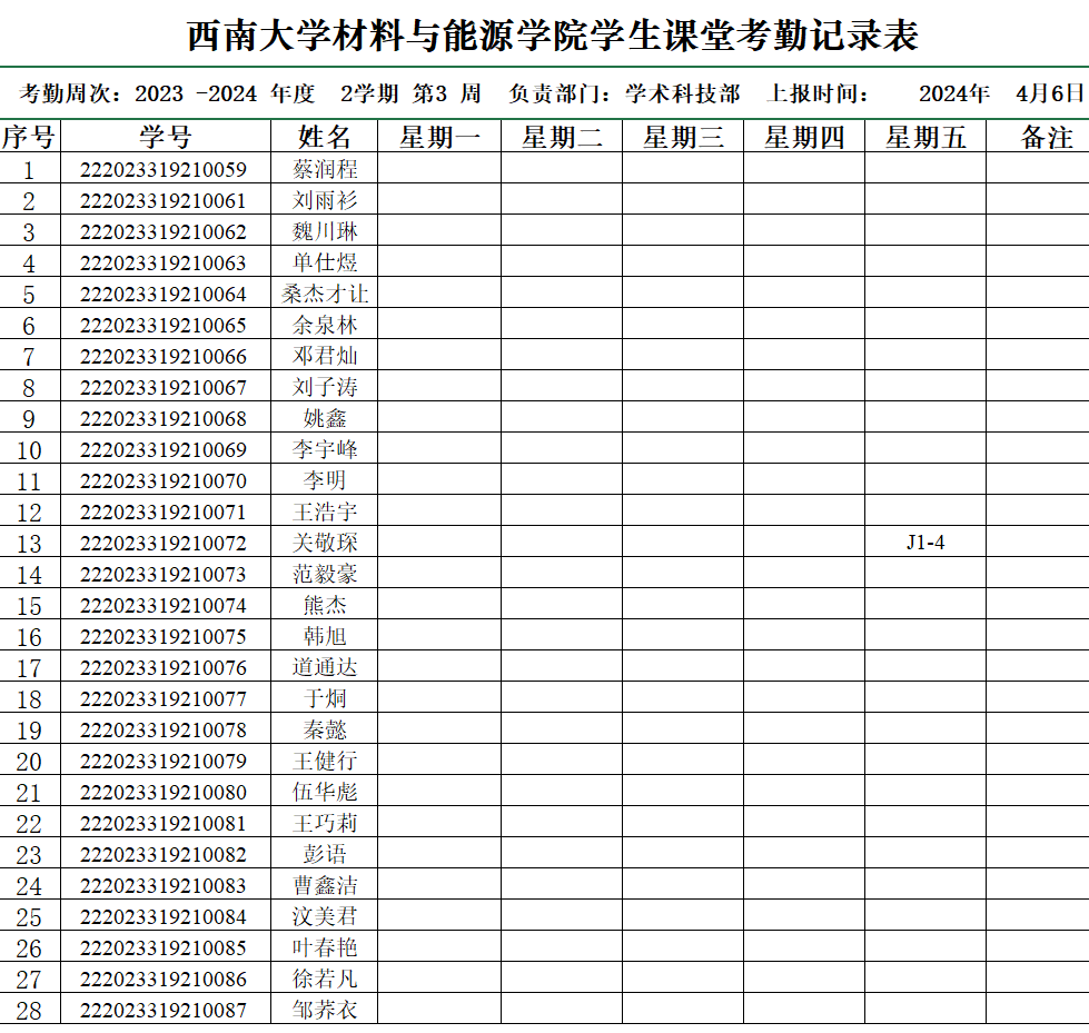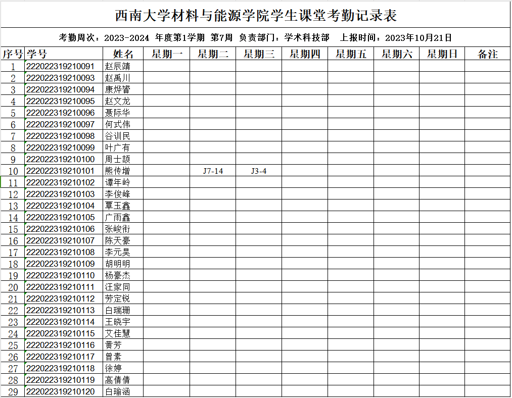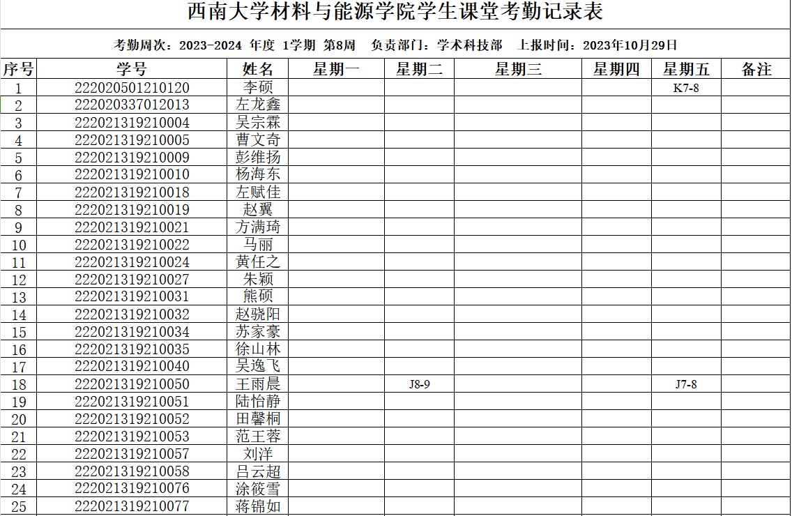 考勤表